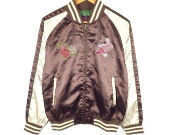 Rare Vintage Sukajan Jacket Eagle Tiger Koi Fish Japan Etsy